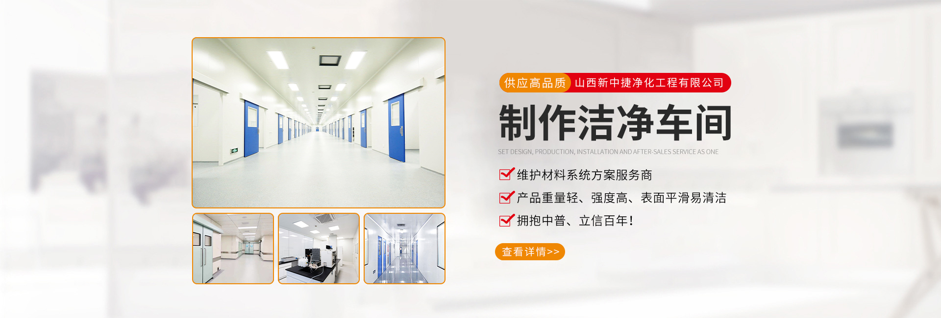 山西新中捷凈化工程有限公司是從事凈化工程的設(shè)計、開發(fā)、生產(chǎn)、安裝、經(jīng)營于一體的凈化板生產(chǎn)廠家擁有生產(chǎn)以上產(chǎn)品的全套設(shè)備,是山西凈化行業(yè)服務(wù)提供商。在公司發(fā)展壯大過程中,我們始終為客戶提供好的產(chǎn)品和技術(shù)支持、健全的售后服務(wù)。公司從事各類凈化板、夾芯板研發(fā)、制造和銷售。我們擁有多種夾芯板、凈化板、彩鋼生產(chǎn)線成套設(shè)備,產(chǎn)品有各種型號的巖棉凈化板、手工凈化板、機制凈化板、紙蜂窩凈化板、泡沫凈化板、硫氧鎂凈化板、聚氨酯凈化板、彩鋼凈化板等,我們所生產(chǎn)的每一個產(chǎn)品均符合相關(guān)行業(yè)要求,每年定期將所生產(chǎn)產(chǎn)品進行質(zhì)量測試,另公司內(nèi)部也擁有獨立的...